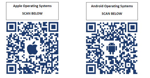 Please scan the relevant QR Code below for the type of Smart Phone or Tablet you are using, for Apple Operating Systems scan the Apple QR Code and for Android Operating Systems such as Samsung please scan the Android QR Code and click Install.