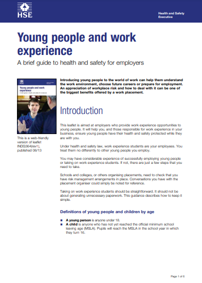 Health & Safety Executive Guidance Documents: Young people and work experience