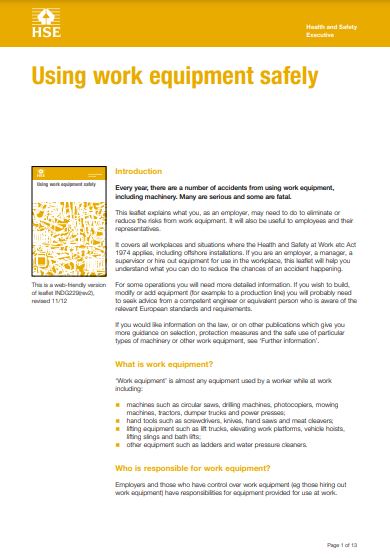 Providing and Using Work Equipment Safely